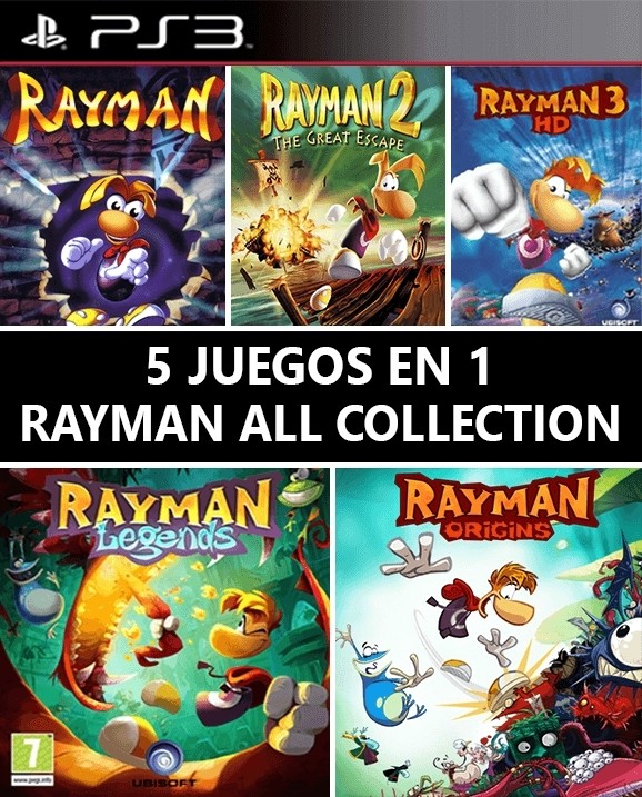 5 juegos en 1 Rayman Legends Mas Rayman Origins Mas RAYMAN Mas Rayman 2 The Great Escape Mas RAYMAN 3 HD PS3