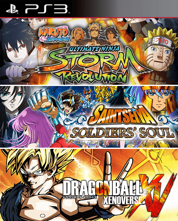 3 JUEGOS EN 1 NARUTO SHIPPUDEN: ULTIMATE NINJA STORM REVOLUTION MAS SAINT SEIYA SOLDIERS SOUL AUDIO LATINO MAS DRAGON BALL XENOVERSE PS3