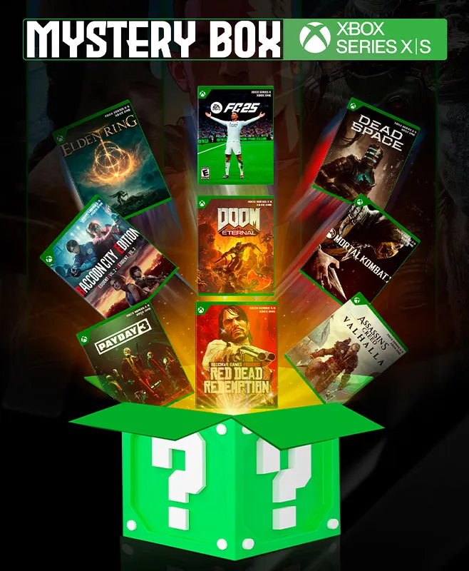 Con nuestra Mystery Box para XBOX SERIES X/S , recibirás 6 juegos seleccionados al azar, elegidos de un amplio catálogo que incluye los títulos visibles en la imagen del producto y más de 1,200 opciones adicionales.